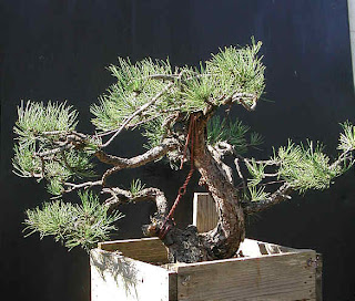 Recently we are bending very old and thick trunks. The question was asked whether I could show one which I have bent a long time ago and show what happened afterwards. Well, look at this. The first image is as of September 2001. I got it from Robert Barth for almost nothing because it seemed like crap. Look at the pathetic move of the trunk to the right. Well, I split it and bent it ruthlessly to the left. Today it starts to look good. If one considers the species it is even better. There are not many collected European black pines in refined stat around. This was for sale all the time. Now it is part of my collection. Too late guys. Be faster next time.