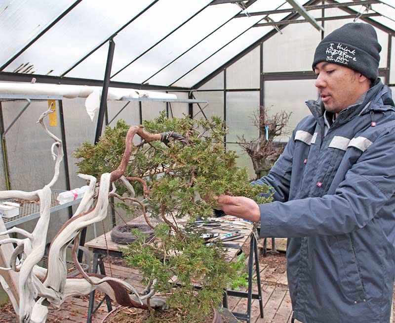 After the deadwood and bark looks very good, Luan started to wire the crown today.