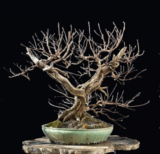 Cotinus #1 - Last winter we had record snow. The cotinus got under a roof avalange and lost lots of well established branches. On the right side there was only the trunk left and all branches were dead. I let it grow freely there all summer long last year. Now I started to make a new crown with only three branches.