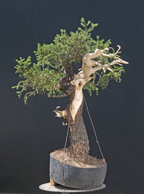 Now the mayor design work is done. The tree will now rest as is for three to four years. Then all the wire will go off and the branches will be edited considerably. Then everything will be completely wired again. It will look fine then.By around 2020 the third wiring will make the tree really shine. Some time in April it will go into the final pot which I don't have yet.